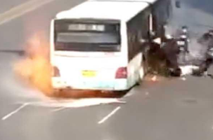 公交車起火自燃 乘客有序撤離幸無人員被困